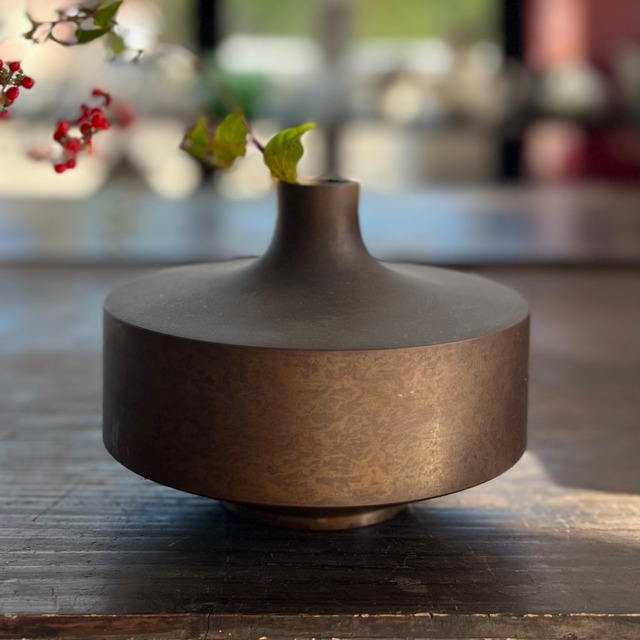 どんな草花も特別な雰囲気を作ってくれる花器です。 重みがあり安定感があります。 高さ:約12cm 直径:約16.5cm 重さ:約1.17kg