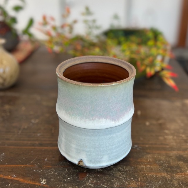 竹を模した器だけでも存在感のある陶器です。 穏やかな色が落ち着いて見えます。 高さ:約15cm 直径:12cm 重さ:約807g
