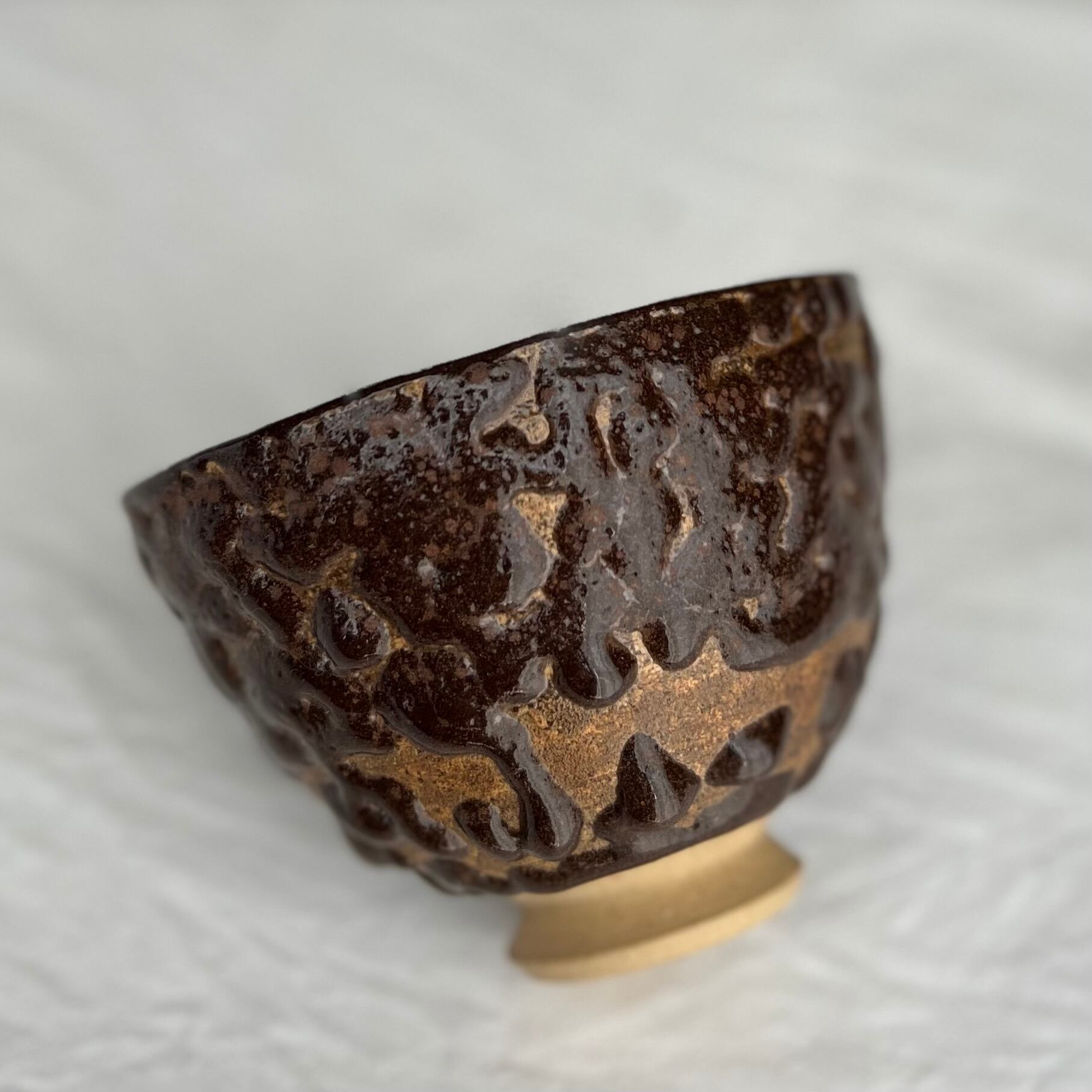 丸みのある凹凸が特徴の茶碗です。