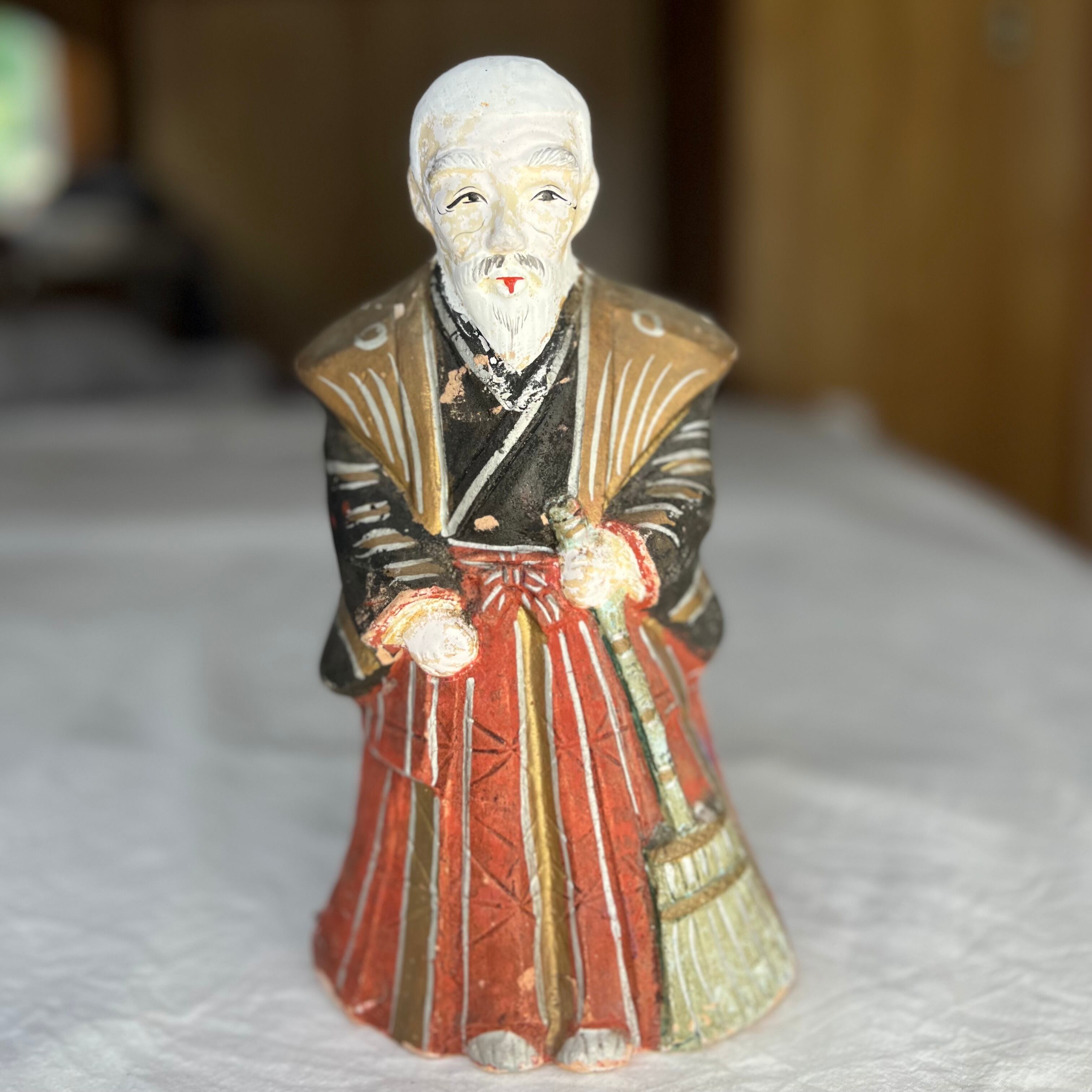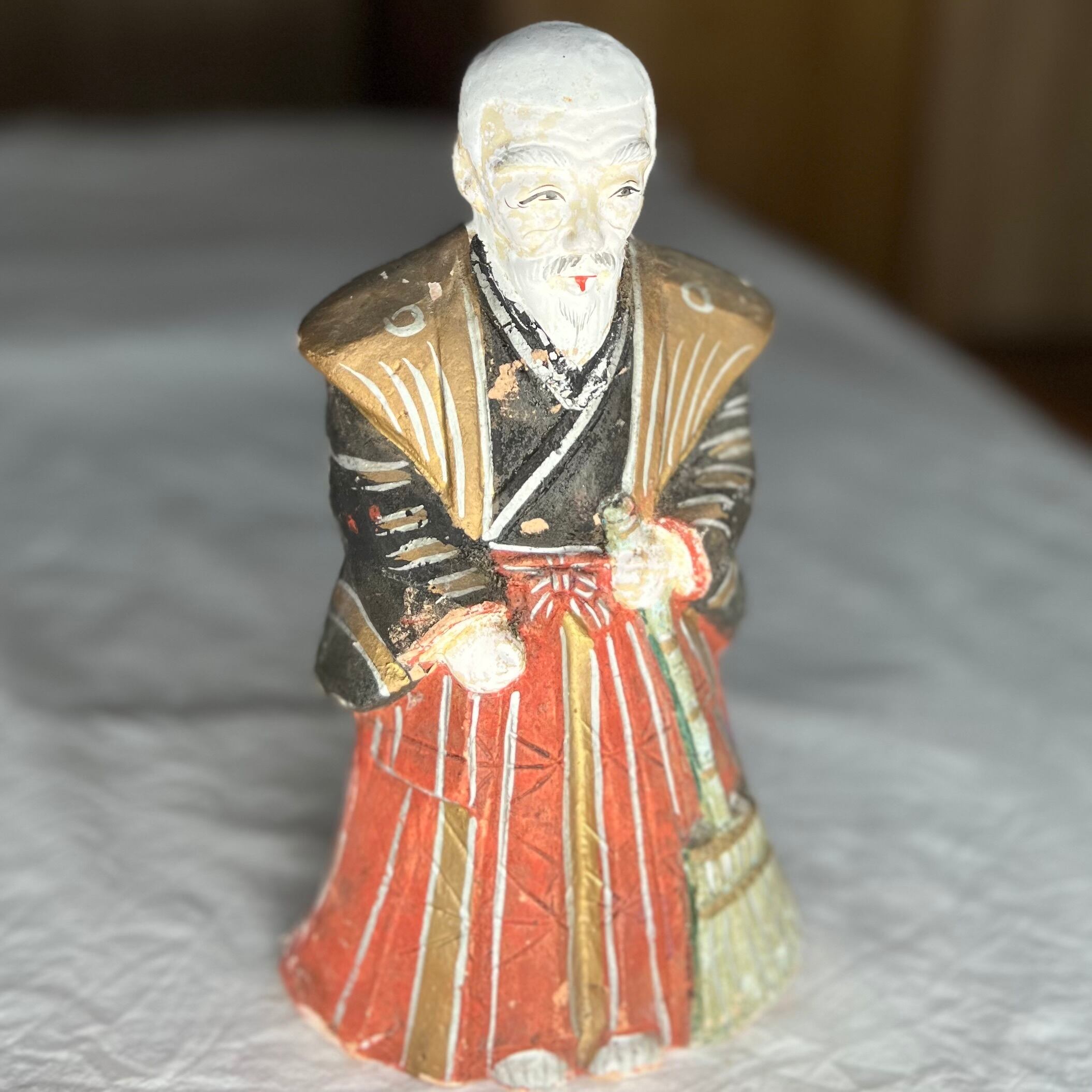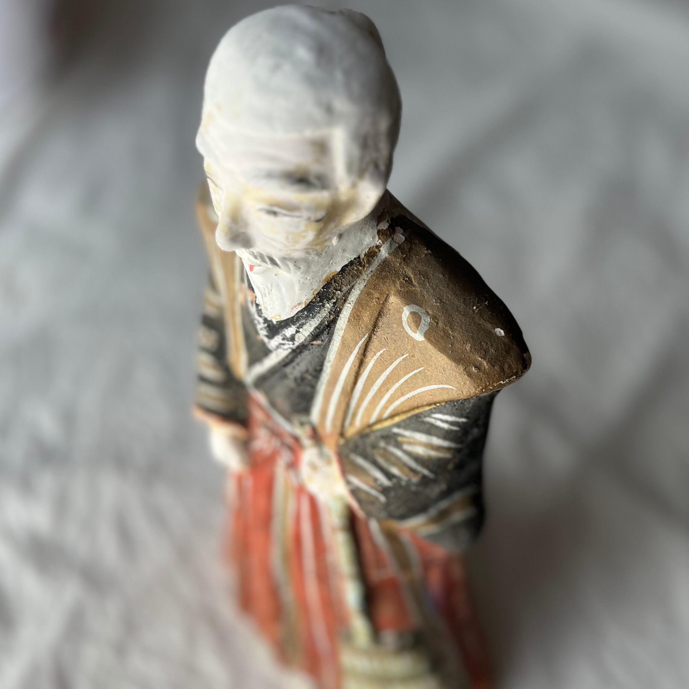白髪老人の土人形。優しい印象の表情です。