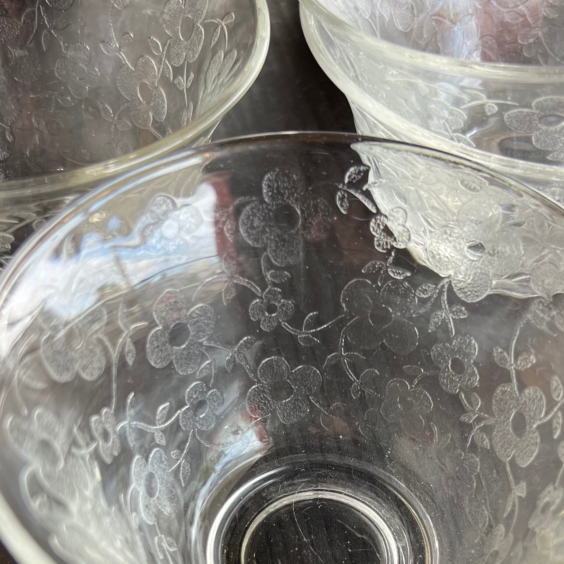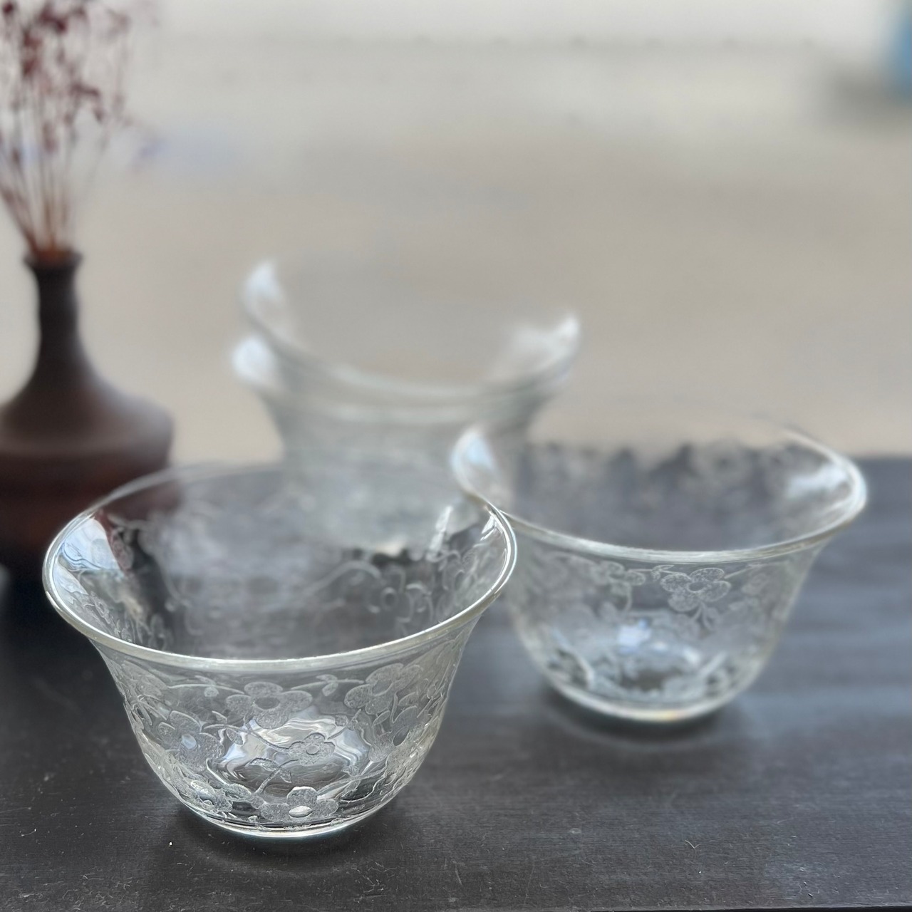 花柄模様が可愛らしい3個セットのガラスの器。
