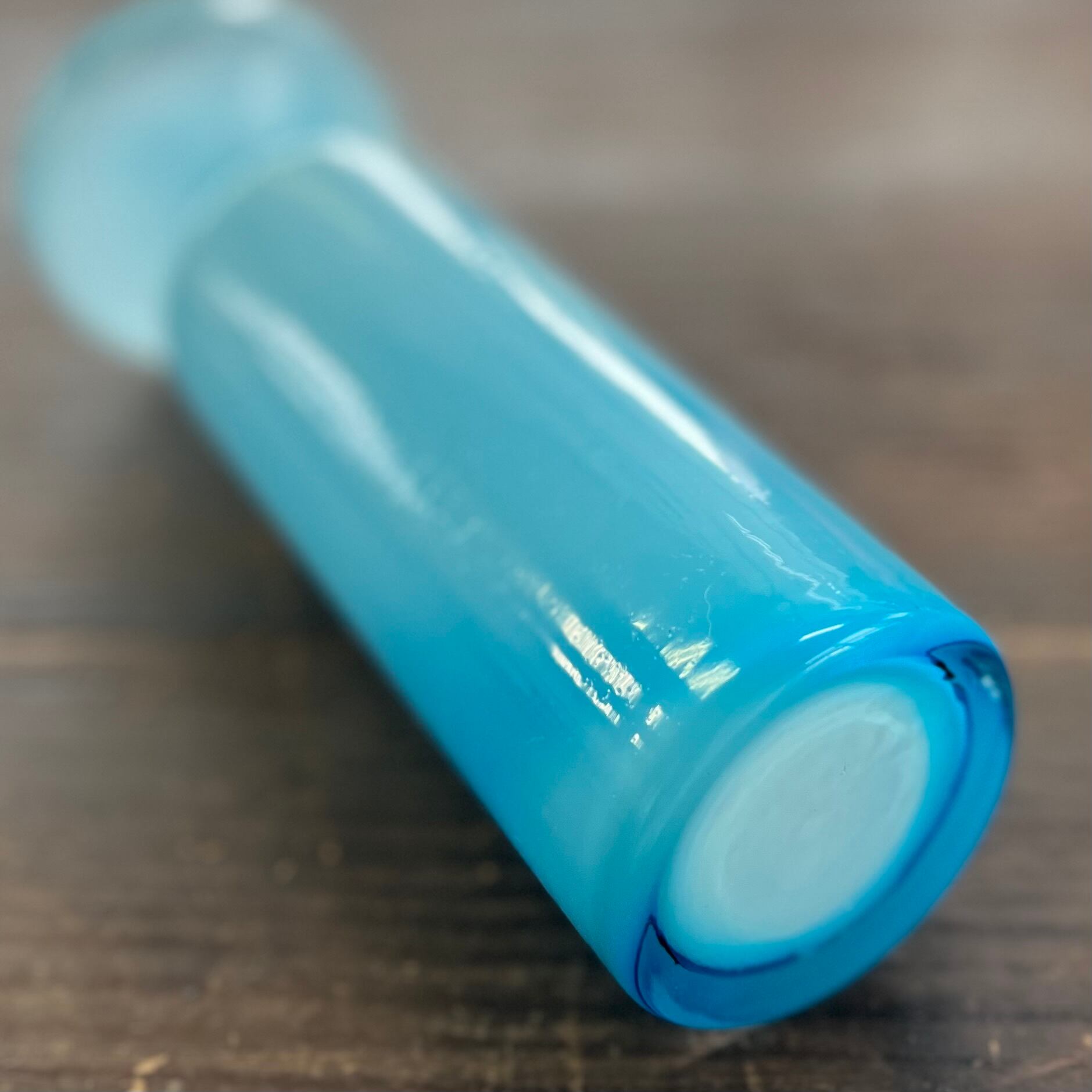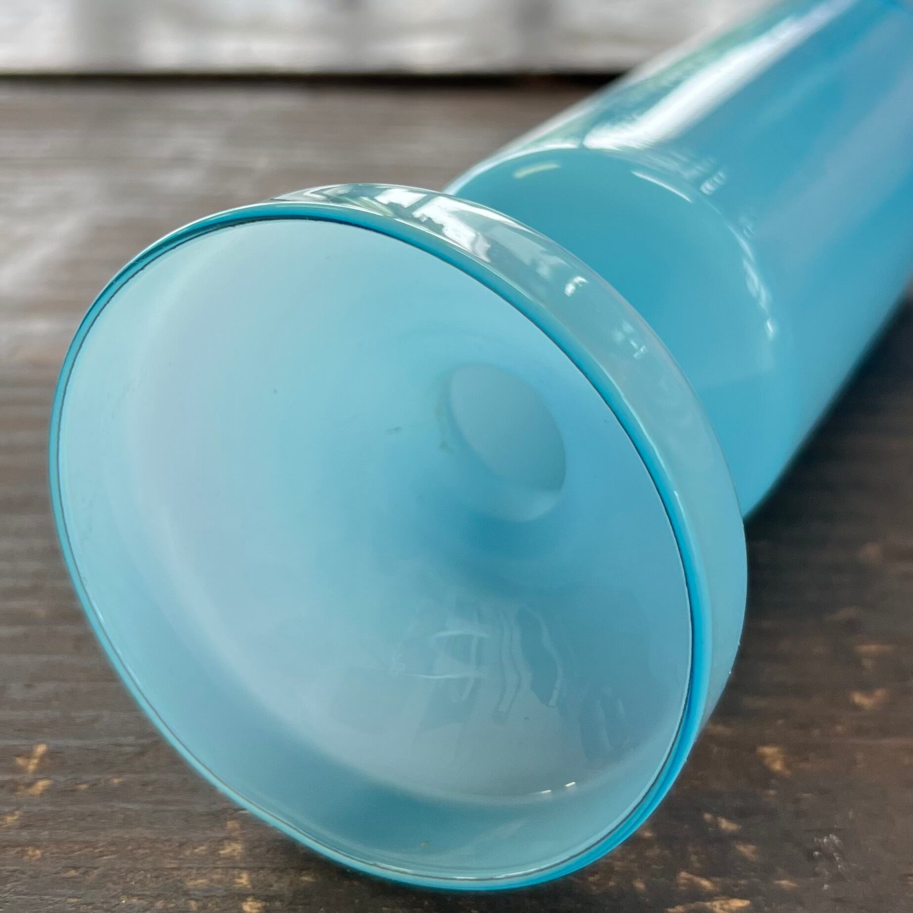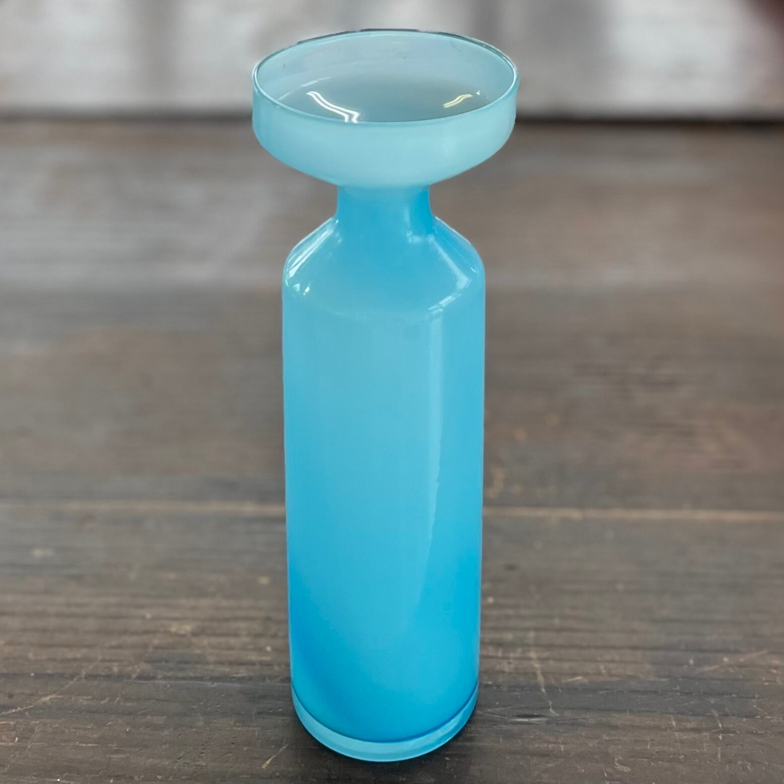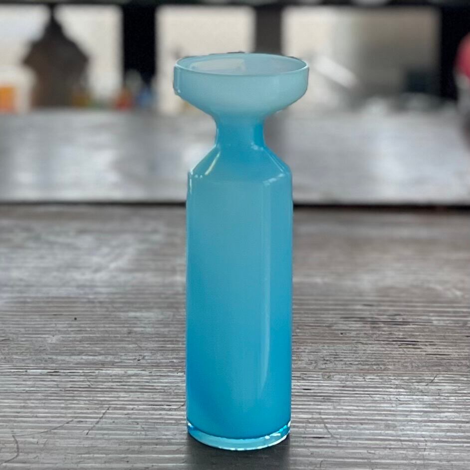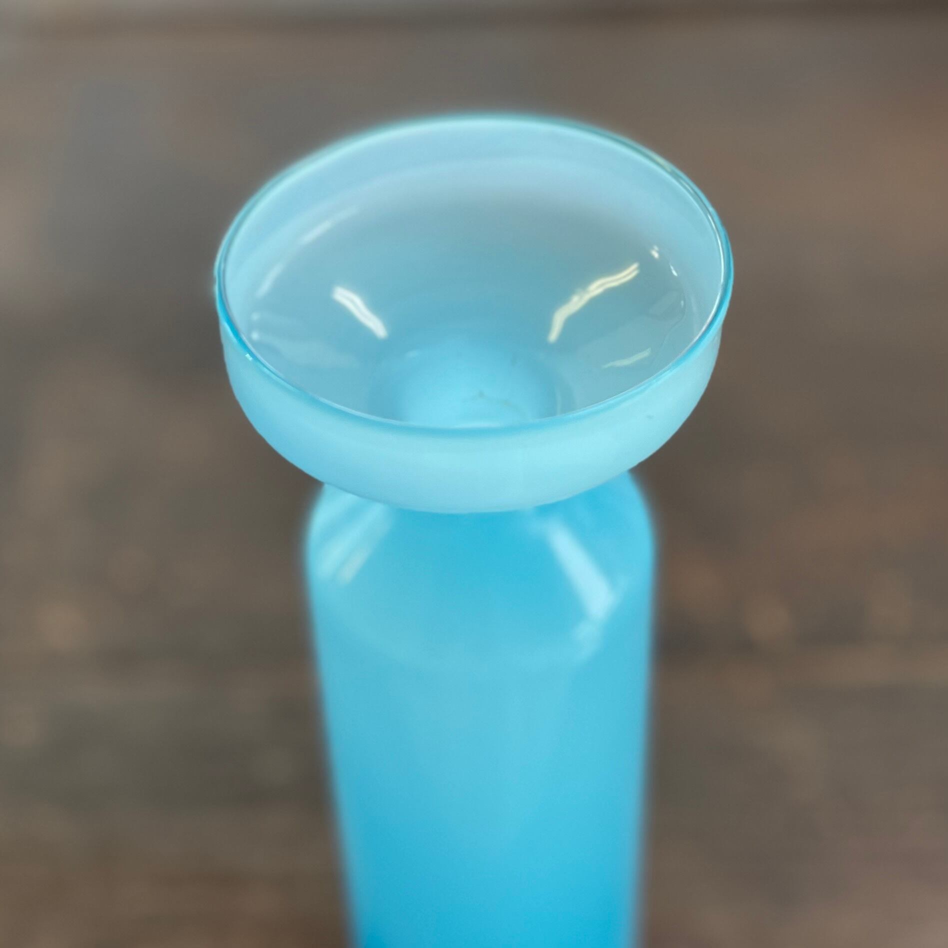 綺麗な水色のすりガラス花器です。