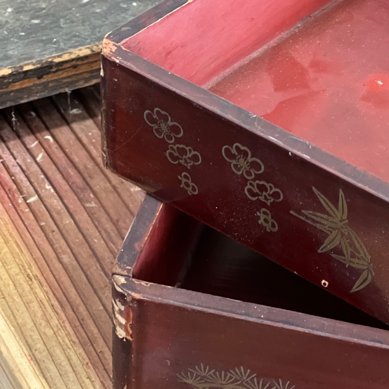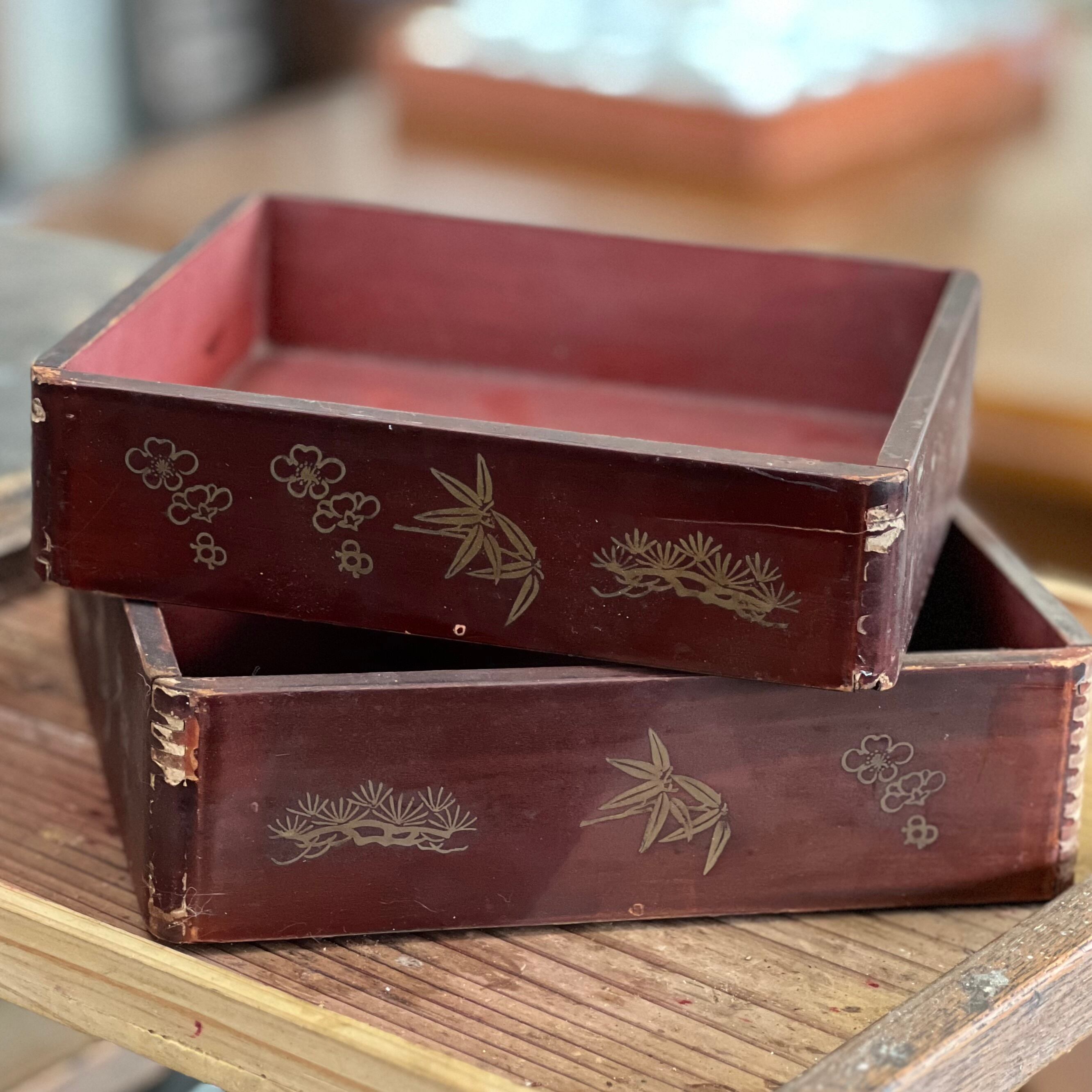 松竹梅模様入りの盆2点セット。