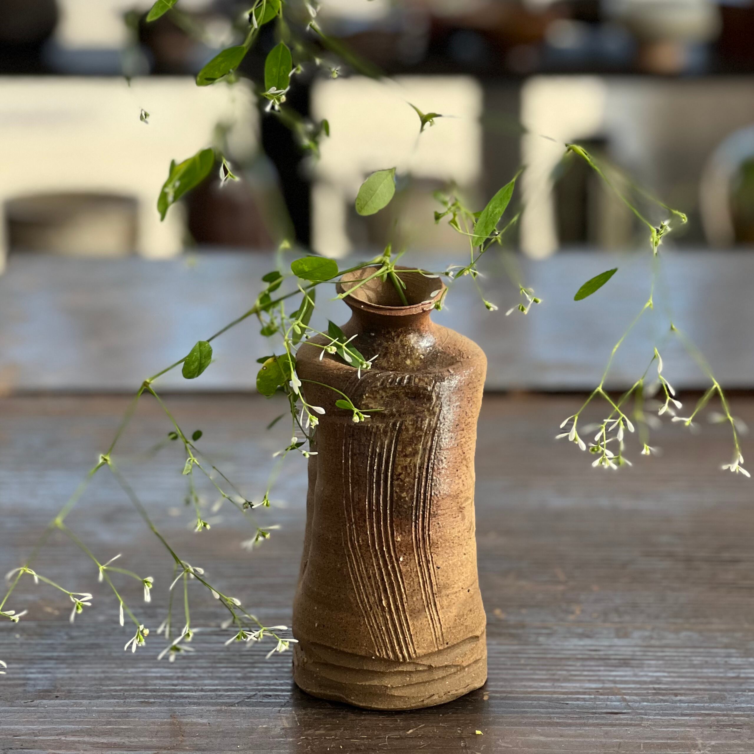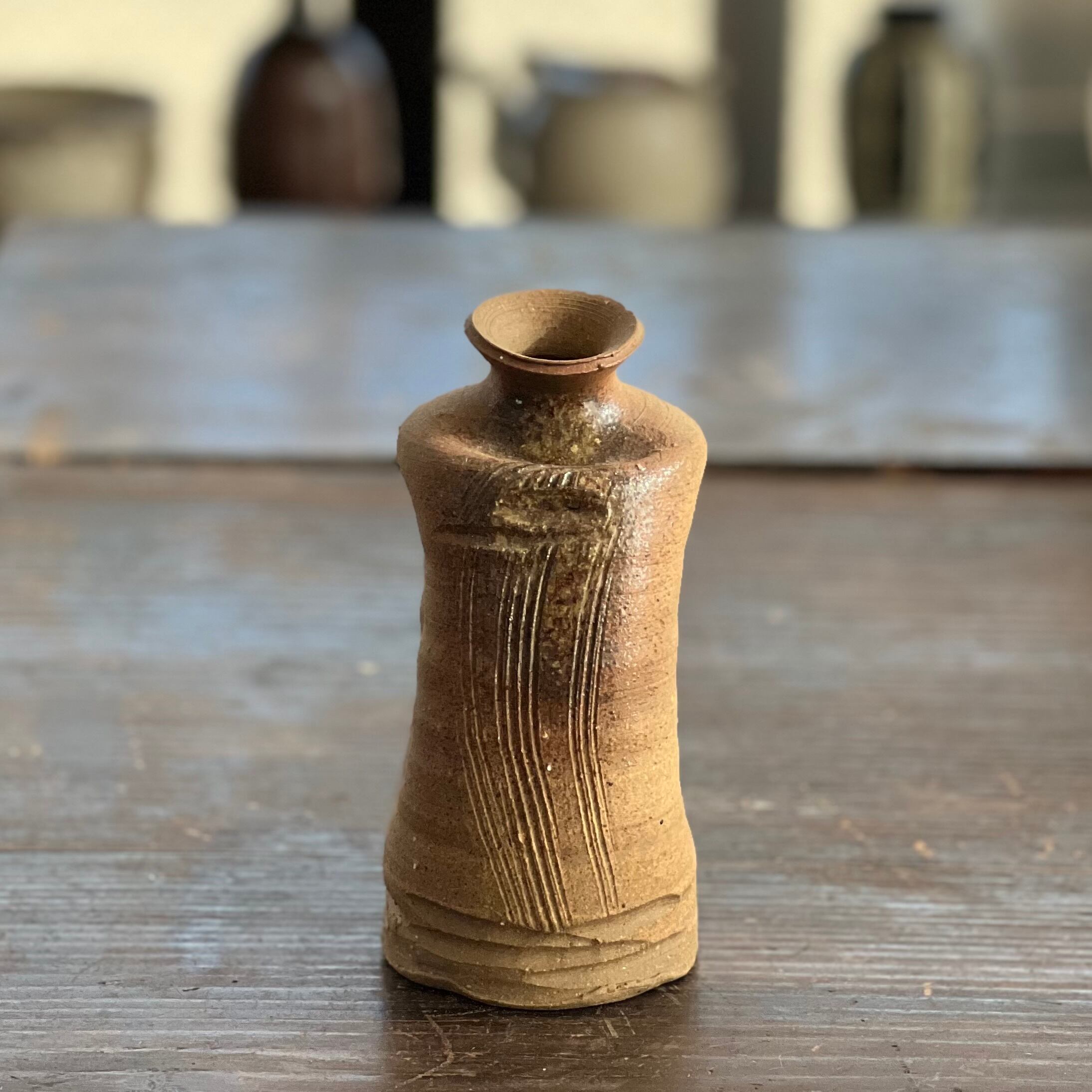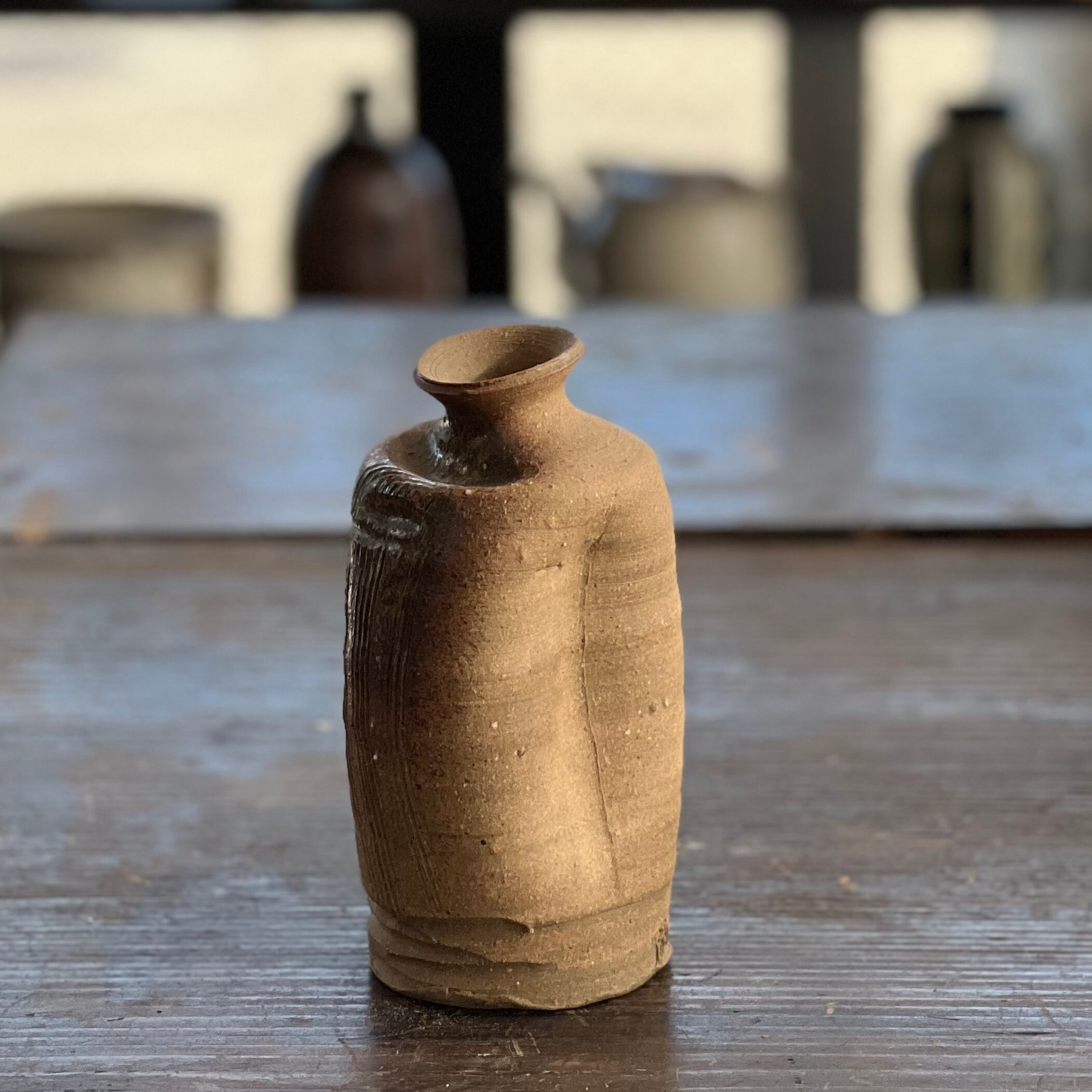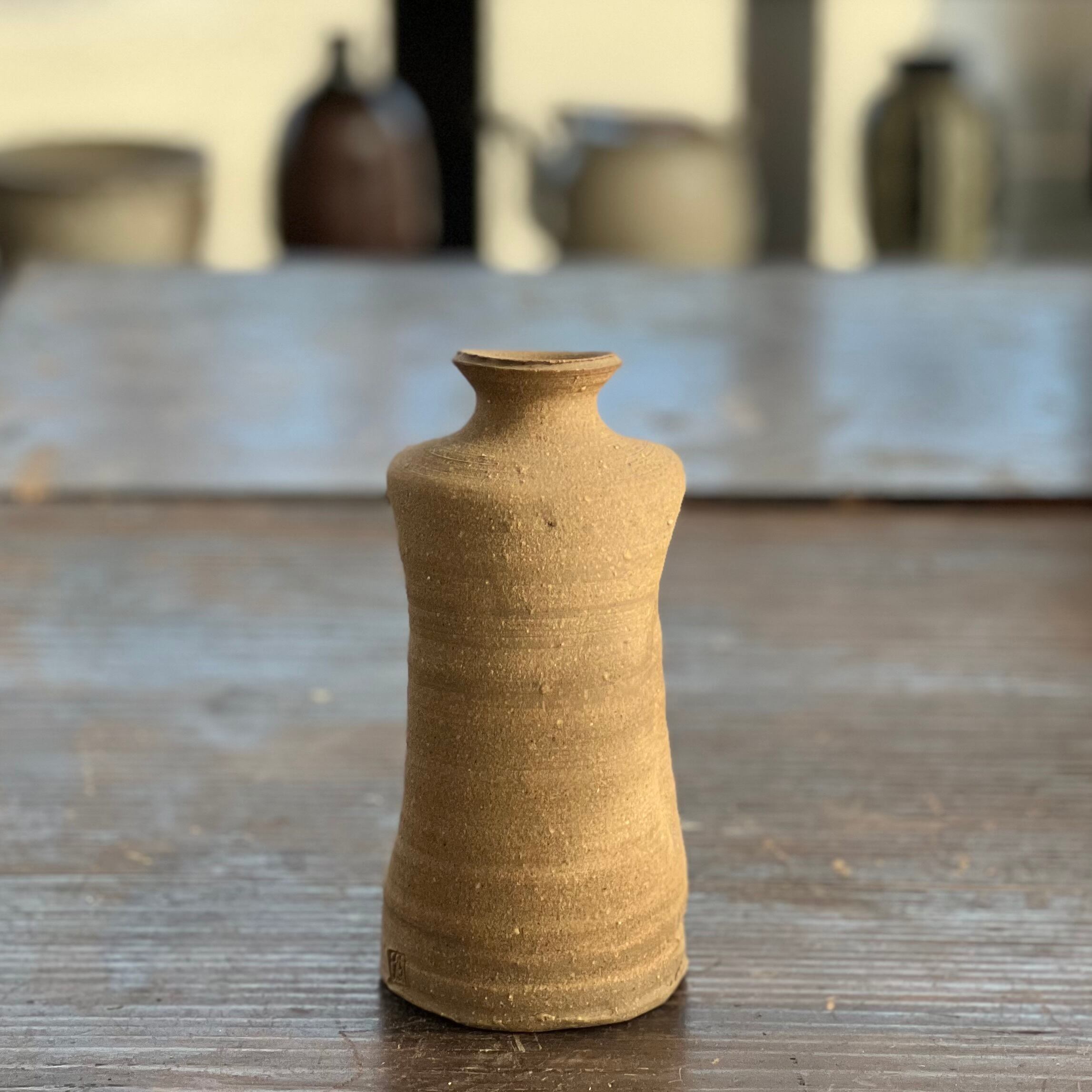 独特の形をした素朴な花瓶です。